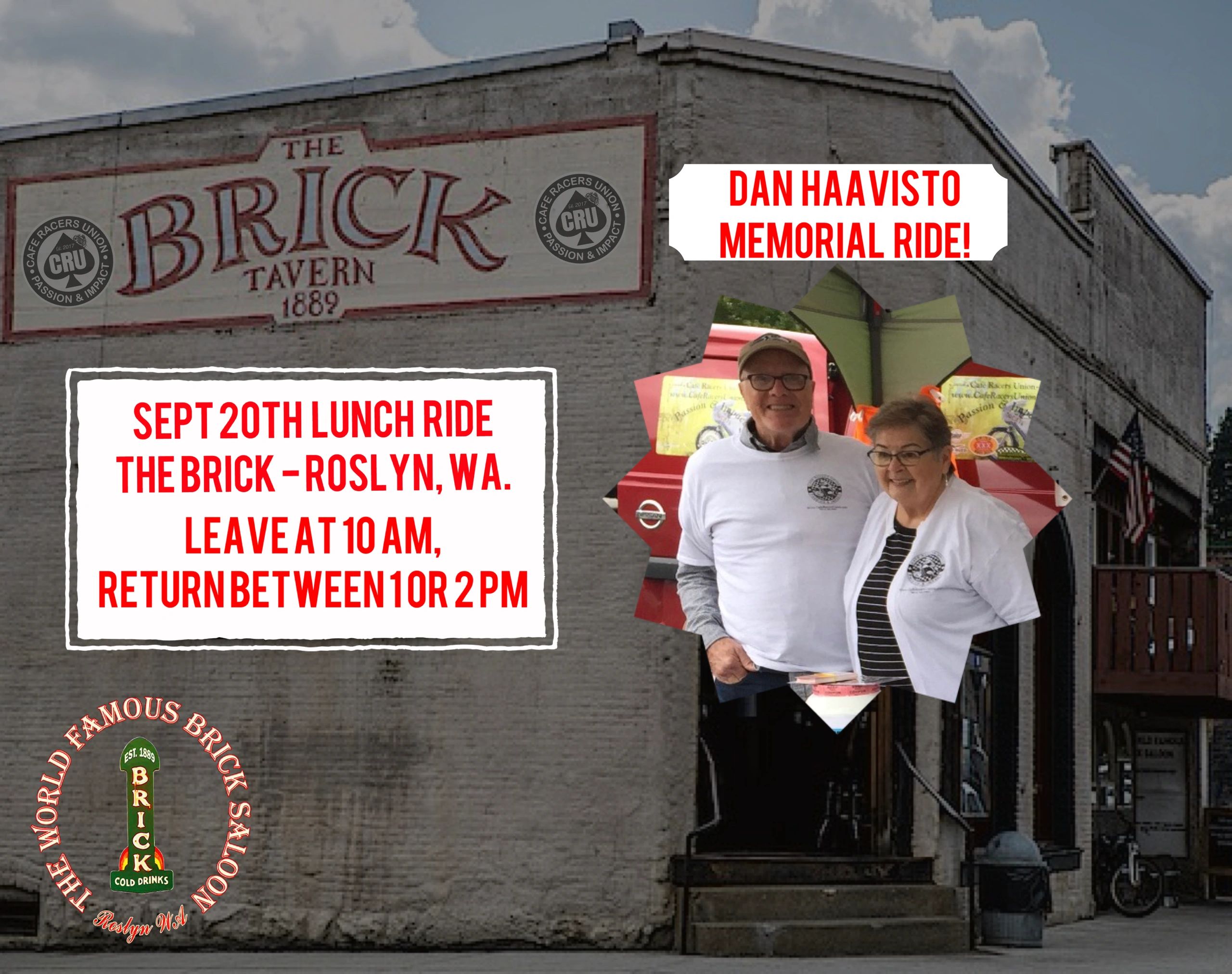 On August 6th we lost a great man, a huge supporter of the CRU and one of the first volunteers to join our efforts. Dan and Sharon Haavisto joined us in 2018 and whenever we had a booth setup they were there to manage, engage people and bring great energy! We will go kickstands up and ride 10:15 AM from I90 Motorsport